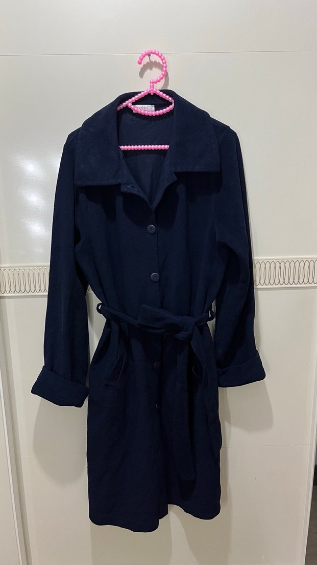 Polar kumaşa sahip 44 bedene kadar rahat olur tüylenmesi var durduğu yerde olmuş fiyata yansıttım Lacivert renkte, kemerli, normal boy midi kaban. Notch yaka ve askılı kollarıyla rahat ve şık, yumuşak ve sıcak kumaştan üretilmiştir.