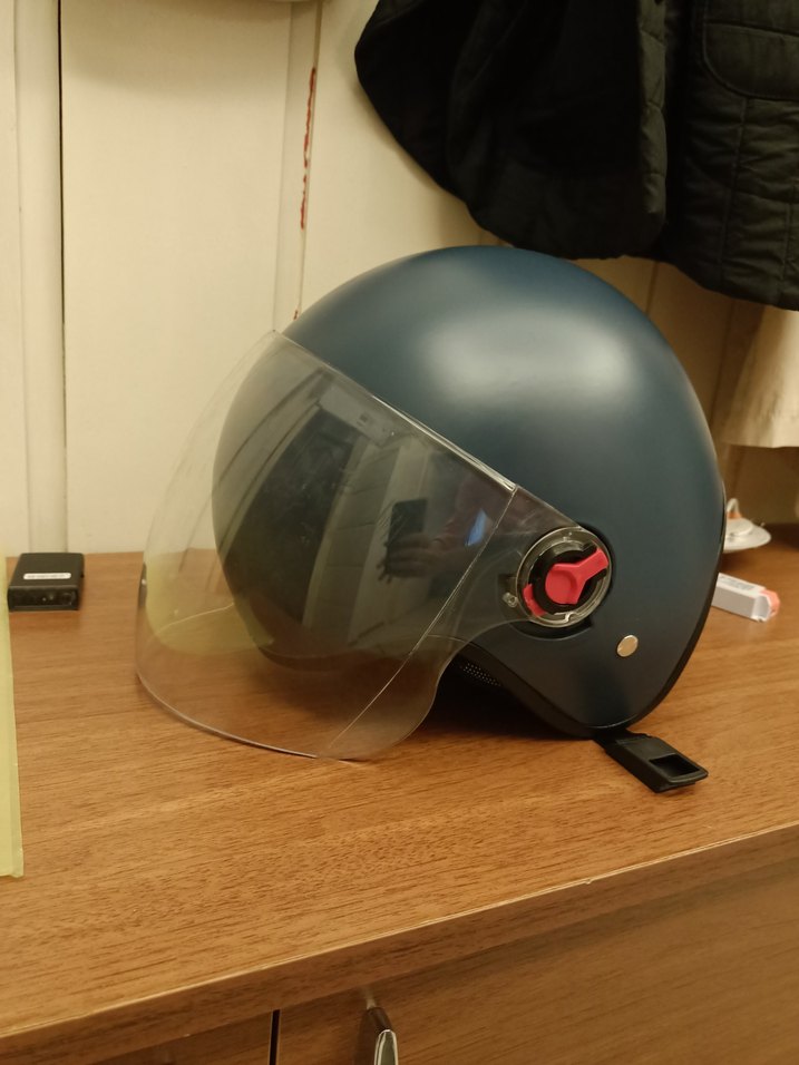 lacivert plastik motosiklet kaskı, şeffaf vizör ve kemerli kayış ile biker tarzında, desensiz şık tasarıma sahiptir. ️ birkaç kez kullanıldı hiçbir kusuru yoktur, başörtümden dolayı daha büyük bedenini almak için satışta..