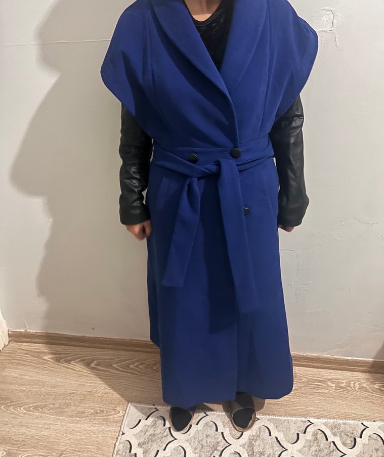Kemerli, yakalı ve uzun lacivert kadın kabanı. Sokak stilini yansıtan, rahat kesimli ve şık strappy kollara sahip. Ofis için uygun, yumuşak ve sıcak kumaştan.