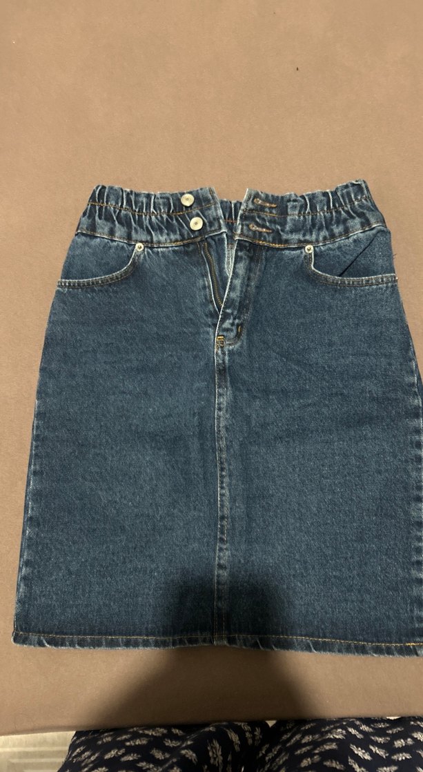 Kemer detaylı, fitted kesim mavi denim midi etek, günlük rahat kullanım için uygundur. ️
