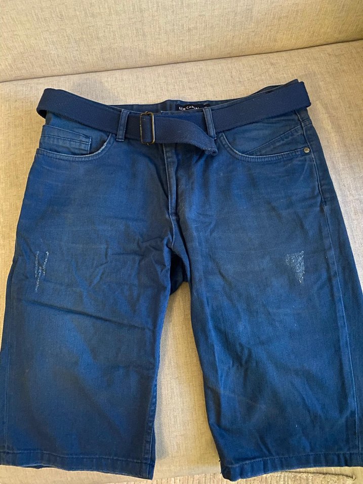 Kemerli Mavi Denim Midi Şort