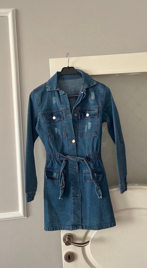 Kemerli Mavi Kadın Denim elbise - Görsel 1