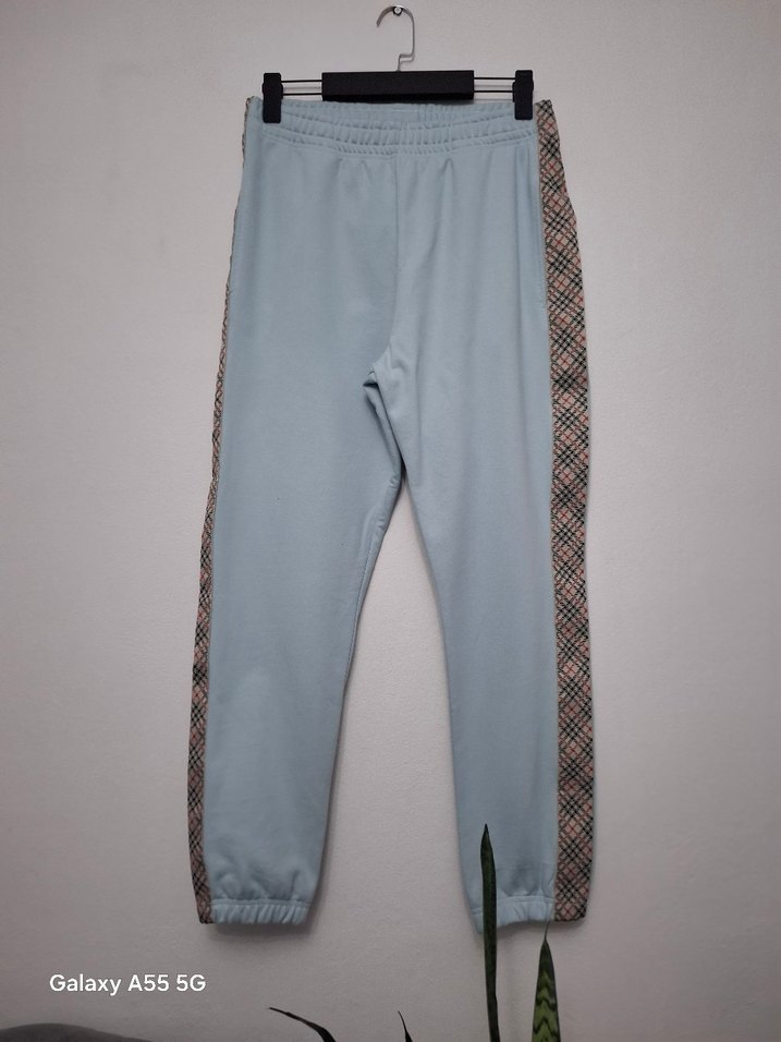 Kemerli beli ve yanları ekoseli detaylı mavi kadın eşofman altı, yumuşak ve rahat kumaşlıdır. Normal boy ve lastikli paça ile dış mekan kullanımı için uygundur.