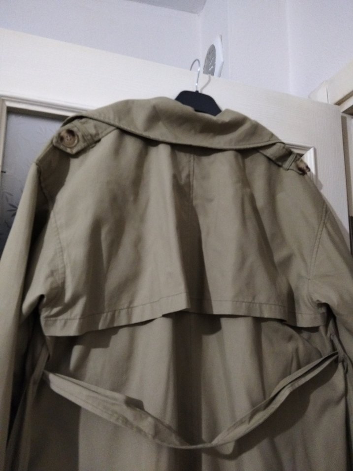 Bej renkli, kemerli midi boy kadın trençkot. Notch yaka, bol kesim ve askılı kollara sahip. Günlük kullanıma uygun, düz desensiz ve sentetik kumaştan.