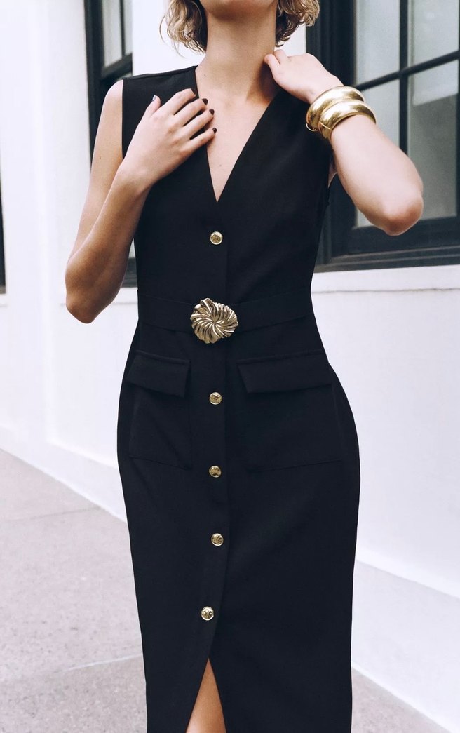 Kemerli midi krep elbise zara