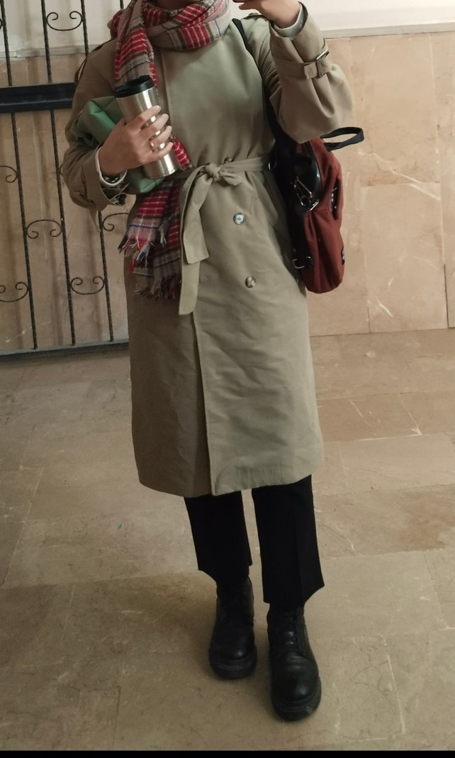 Kemerli midi trençkot. Açık yeşil renkte, 36 beden, kol kısmında çok hafif siyah çizgiler mevcut BAŞKA KUSURU YOKTUR. Kusurlu kısmı sona ekledim zaten.