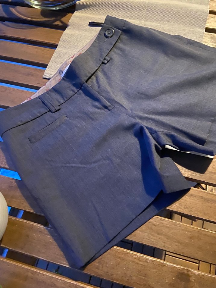 Koyu denim kumaştan yapılmış, kemerli ve mini boy regular fit şortu. Desensiz ve sokak tarzına uygun.