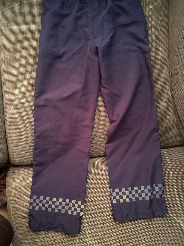 Kemerli, bol kesim mor erkek çocuk pantolonu. Paça kısmında kareli desen bulunur. Sentetik kumaştan üretilmiştir, rahat sokak stili için uygundur.