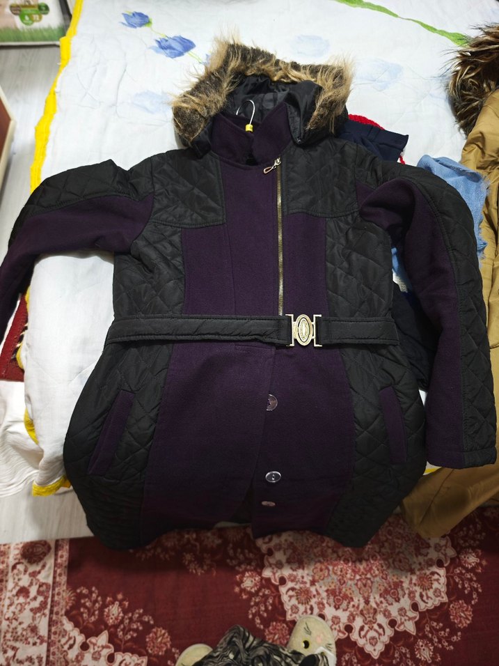 Kemerli, uzun kollu, mor kadın kışlık mont. Yumuşak ve sıcak kumaştan üretilmiş, normal boyda ve dar kesim. Günlük sokak stili için uygundur. ❄️