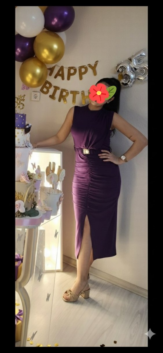Kemerli Mor Uzun Kadın Elbise - Görsel 1