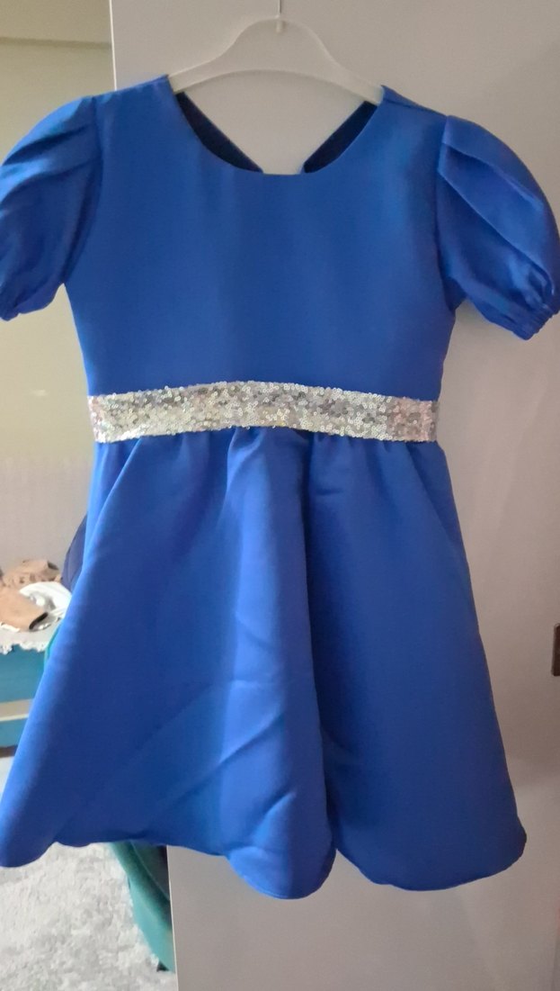 Kemerli Parlak Mavi Kız Elbisesi