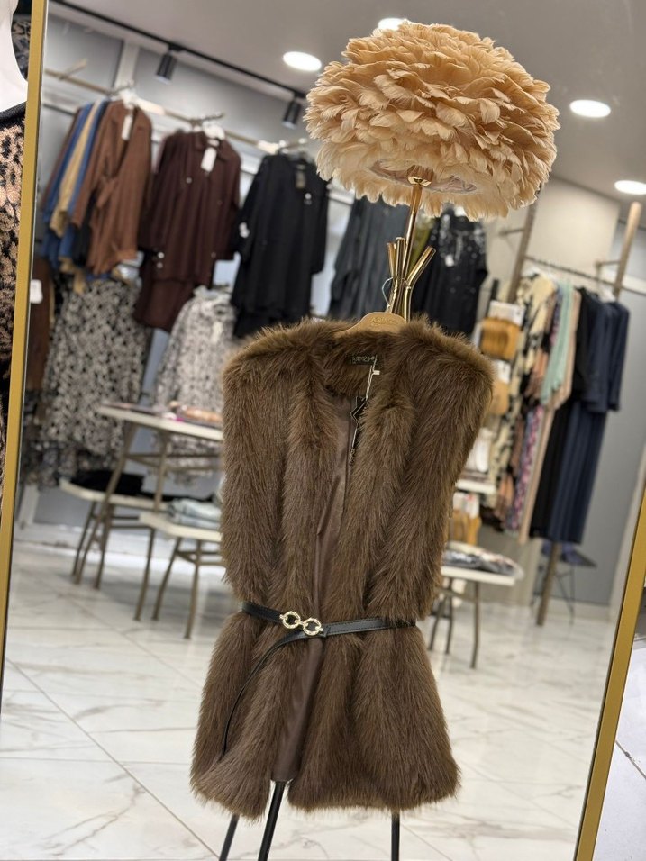 Kemerli Premium Kürk Yelek Kahve Sıfır Etiketli