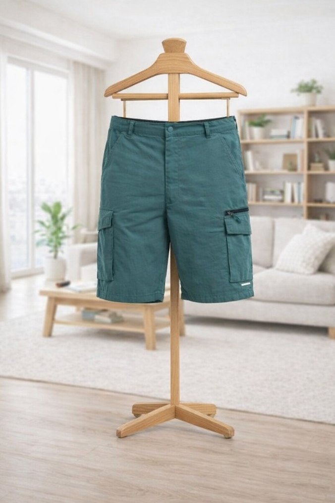 koyu yeşil renkli, kemerli ve rahat kesime sahip erkek şort. 2XL veden Sentetik kumaştan üretilmiş, günlük kullanıma uygun kısa paçalı ve pratik ceplidir. 1 veya 2 kez giyildi yepyeni