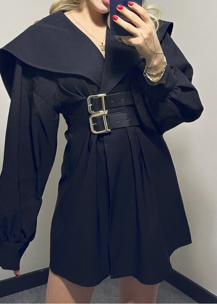 Kemerli Siyah Ceket Elbise