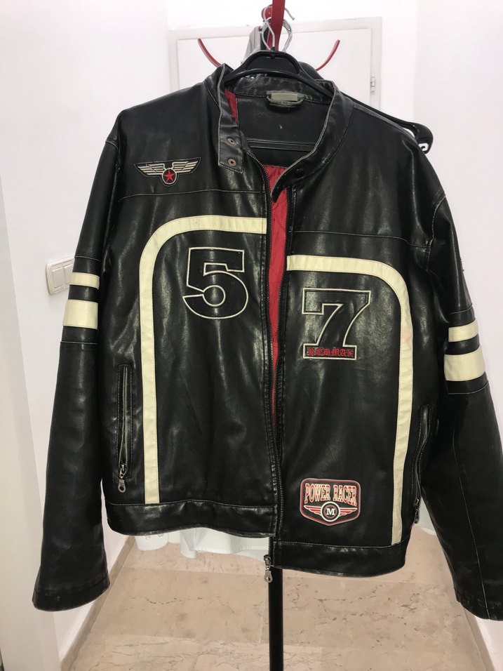 Kemerli, uzun kollu, İçi kırmızı dışı siyah deri biker ceket. Notch yakalı ve baskılı detaylara sahip. Günlük kullanıma uygun rock punk tarzını yansıtıyor.Özel bir deri cekettir derisinde ufak bi yırtılma dahi yoktur kesimi mükemmeldir