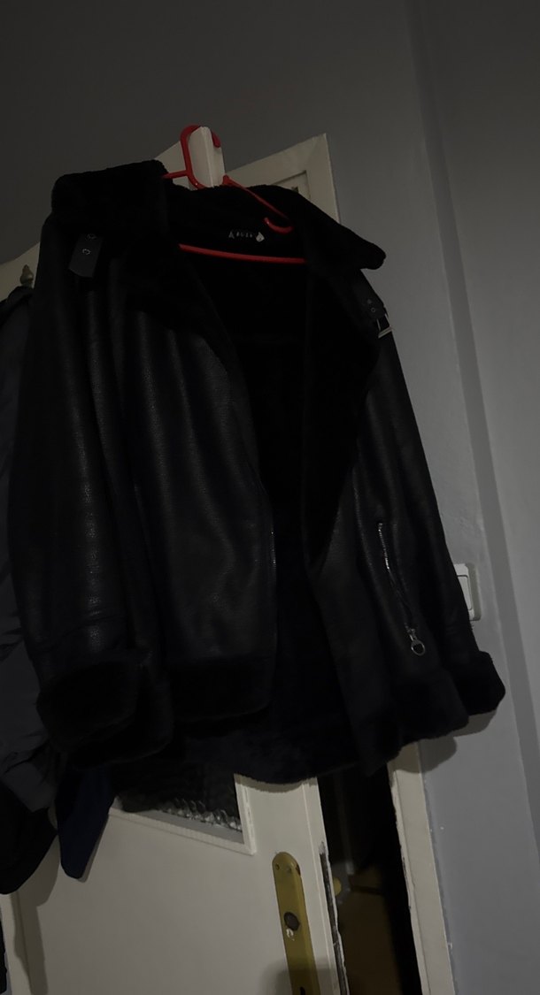 Kemerli Siyah Deri Gotik Kadın Ceket