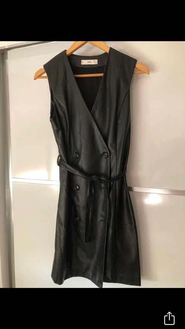 Kemerli, siyah deri, uzun kesim ve kolsuz bu ceket elbise fitted tasarımı ve kesik yakasıyla ofis stiline Paris sokak modası dokunuşu katıyor. Bir kere denendi yeni ve şık