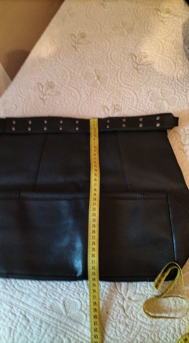 Kemerli, siyah deri midi kol cantasi düzgün ve desensiz tasarımıyla günlük kullanım için uygun.
