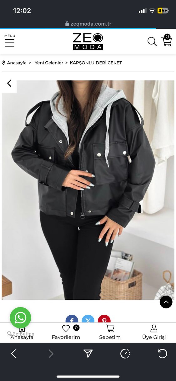 Kemerli bel ve askılı kollara sahip siyah deri mini ceket, kısa ve bol kesimdir. Günlük kullanıma uygundur.