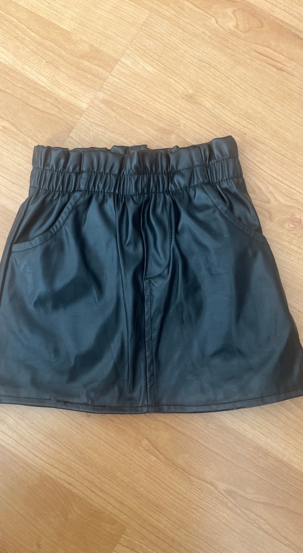 Kemerli ve büzgülü bel detayına sahip, dar kesim siyah deri mini etek, sokak modası ve dış mekanlar için uygun.