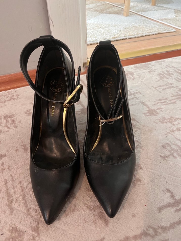 Kemerli Siyah Deri Stiletto Topuklu Kadın Ayakkabı