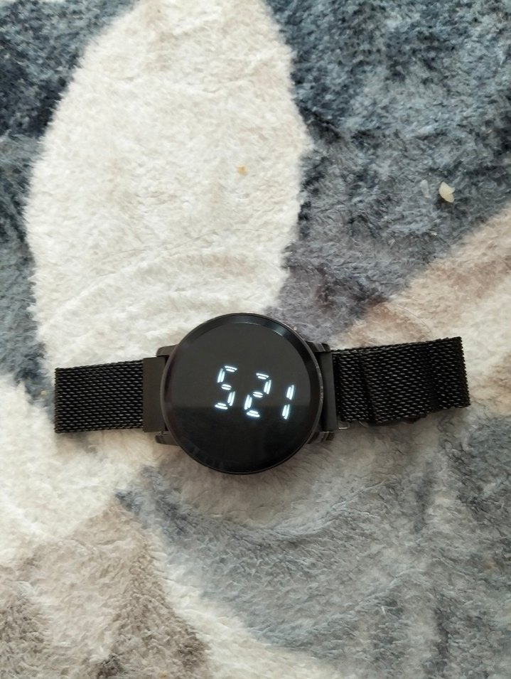 Bu siyah kadın saati, kemerli örgü kayış ve 5:21 dijital ekran ile rahat ve gotik tarzı bir tasarıma sahiptir. ⌚
