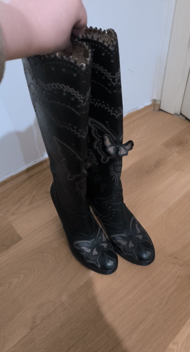 Kemerli ve desenli siyah dizüstü botlar, yüksek topuklu ve kauçuk malzemeden yapılmıştır, günlük kullanım için uygundur hakiki deri iade yoktur bilginize