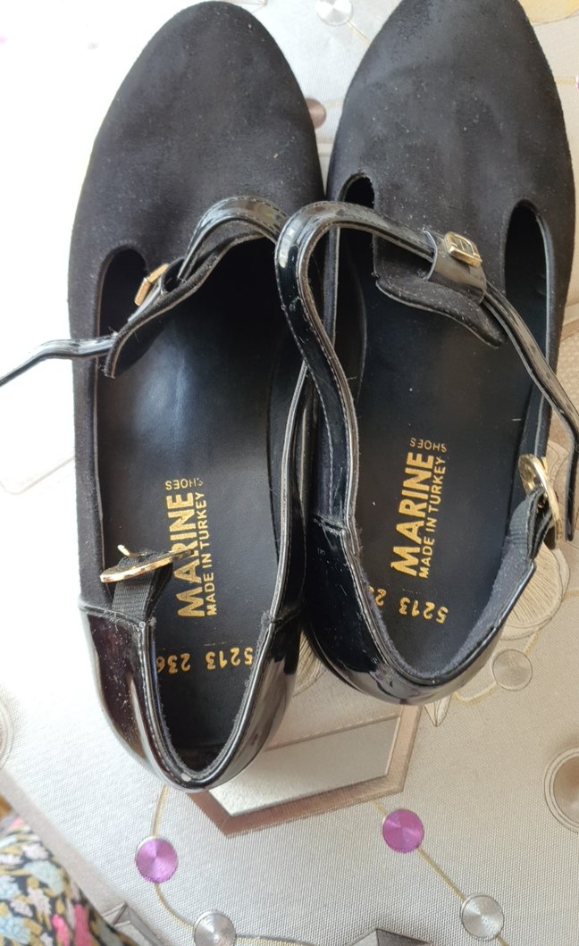 Kemerli kaymaz tabanlı siyah dolgu topuk kadın ayakkabısı. Baskılı deseniyle romantik akşamlar için uygundur. Türkiye yapımı. önleri süet arkası rugan 38 numara Bayan ayakkabı, hiç giyilmedi ayağı sıktığı için