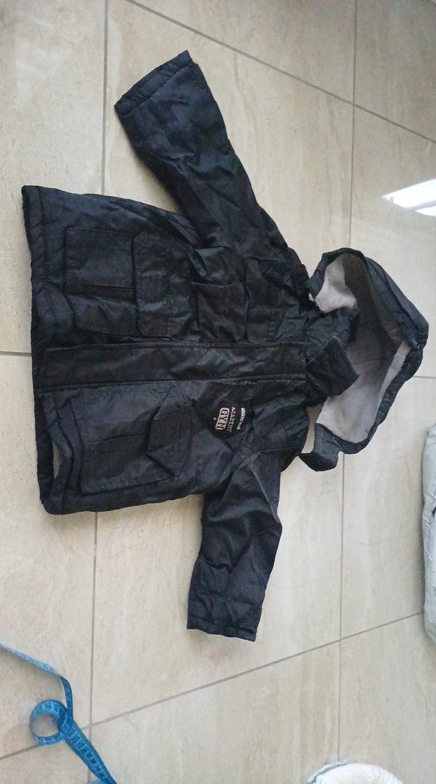Kemerli ve kesimli, siyah renkte yumuşak ve sıcak kumaştan yapılmış erkek çocuk montu. Notch yaka ve sokak stili için uygun.az kulanıldı sorunsuz