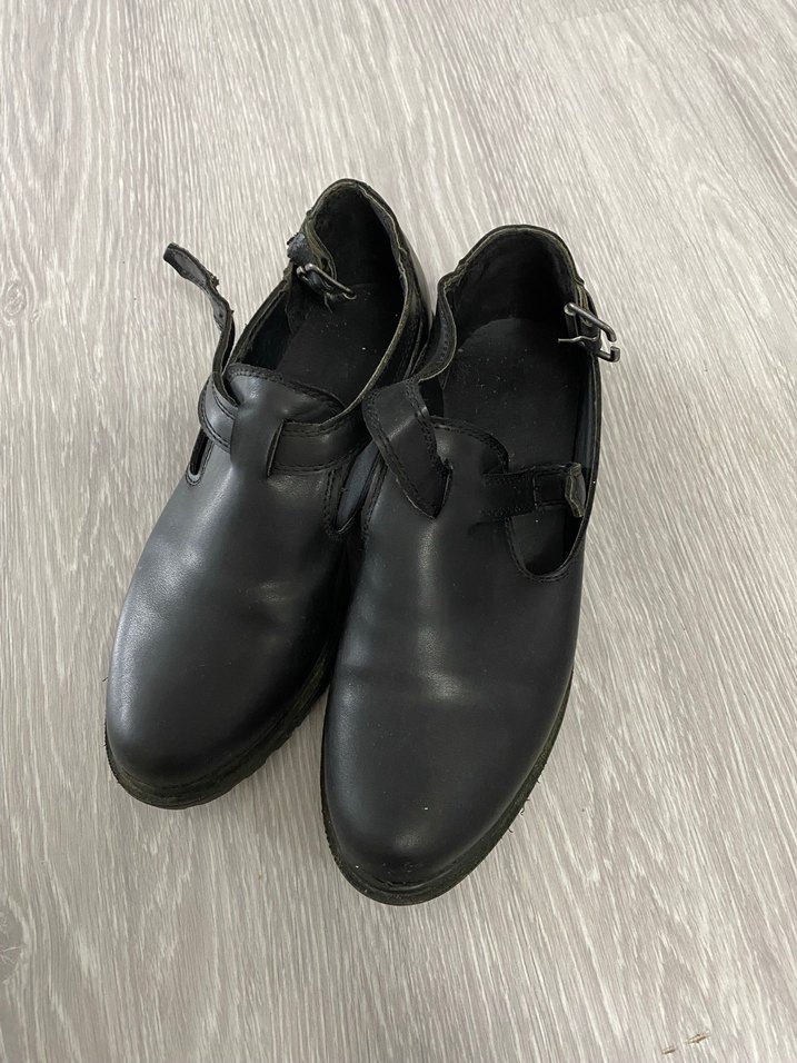 Kemer detaylı siyah ayakkabı.