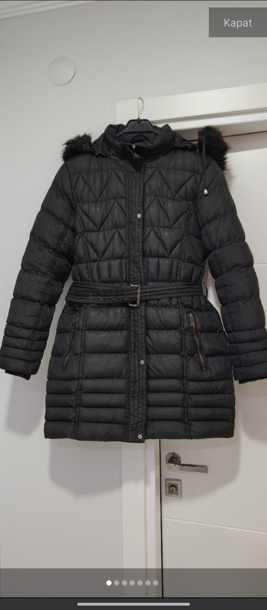 Kemerli ve oturan kesime sahip siyah kışlık mont, sentetik kumaştan üretilmiştir. Strappy kollu ve notched lapel yakalı, midi boyda, sade tasarımlıdır. Günlük kullanım için uygundur. ❄️