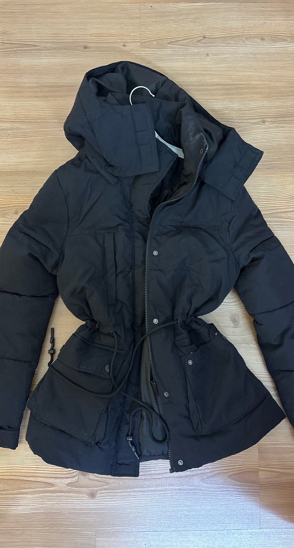 Kemerli, oturmalı ve midi boyda siyah kadın kışlık mont. Yaka detayları ve askılı kollarıyla sokak tarzına uygun, sıcak ve rahat kumaştan üretilmiştir.