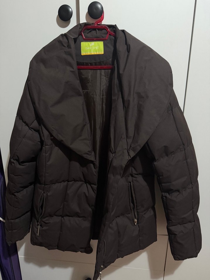 Koyu kahverengi, cepli, yarım fermuarlı, yakalı şişme mont çok iyi durumda Teklif verebilirsiniz