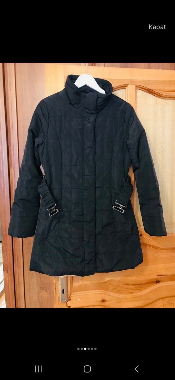 Kemerli, siyah, sentetik kumaştan yapılmış, normal boyda, kesimli bir kadın kışlık mont. Notlu yaka ve askılı kollara sahiptir. Sokak stiline uygundur. ❄️
