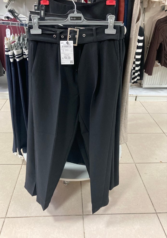 Kemerli bel ve midi boy, regular fit kesime sahip siyah kadın kumaş pantolon. Ofis ve günlük sokak stiline uygun, yumuşak sentetik kumaştan.
