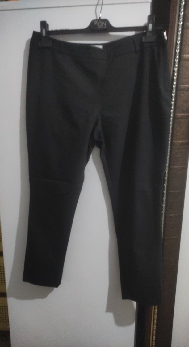 Kemerli siyah kadın kumaş pantolon, normal boy ve regular fit. Ofis için uygun, trend sokak stiliyle uyumlu, sentetik kumaştan üretilmiştir.