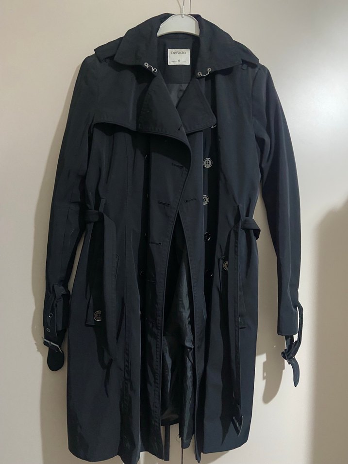 Kemerli Siyah Kadın Trençkot