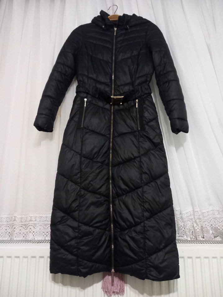 Kemer detaylı, uzun siyah kış montu yüksek yakalı ve dar kesimdir. Sentetik kumaştan yapılmış, günlük sokak modasına uygun genç ve şık bir modeldir. ❄️