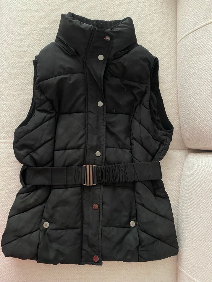 Kemerli bel ve yakalı tasarımıyla siyah, kolsuz, orta boy kadın yelek. Sentetik kumaştan, rahat ve modaya uygun, günlük kullanıma uygun. Ürün boyu 58 cm iki koltuk arası mesafe 41 cm’dir