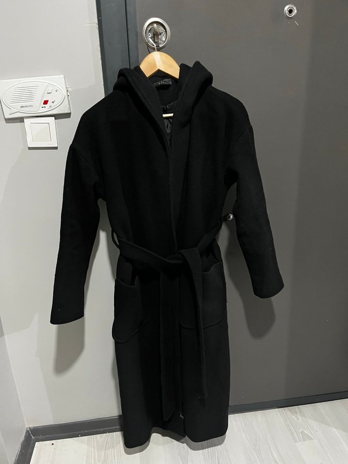 Siyah kaban, kapüşonlu ve kemerli tasarıma sahiptir. Uzun kollu ve iki ön cepli, soğuk havalar için yumuşak ve sıcak kumaştan üretilmiştir.