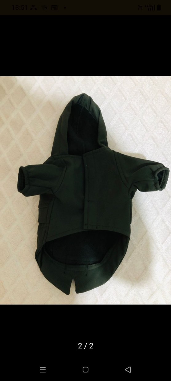 Kemerli, kapüşonlu siyah sokak tarzı köpek kıyafeti. Rahat bir uyum için tasarlanmıştır ve desensizdir.