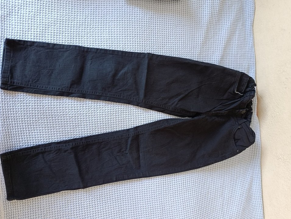 Kemerli, siyah renkli keten erkek çocuk pantolonu, rahat kesim ve desensiz sade tasarıma sahiptir. iç lastiğinde sorun var kullanıma engel değil