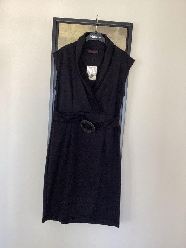 Kolsuz, V yakalı, kemerli siyah uzun elbise, klasik ve şık gotik tarzıyla ofis kullanımına uygundur. Düzenli kesim ve uzun boy ile zarif bir siluet sunar. İki kol arası 46 cm Boy 95 cm’dir M bedendir Yeni etiketli üründür
