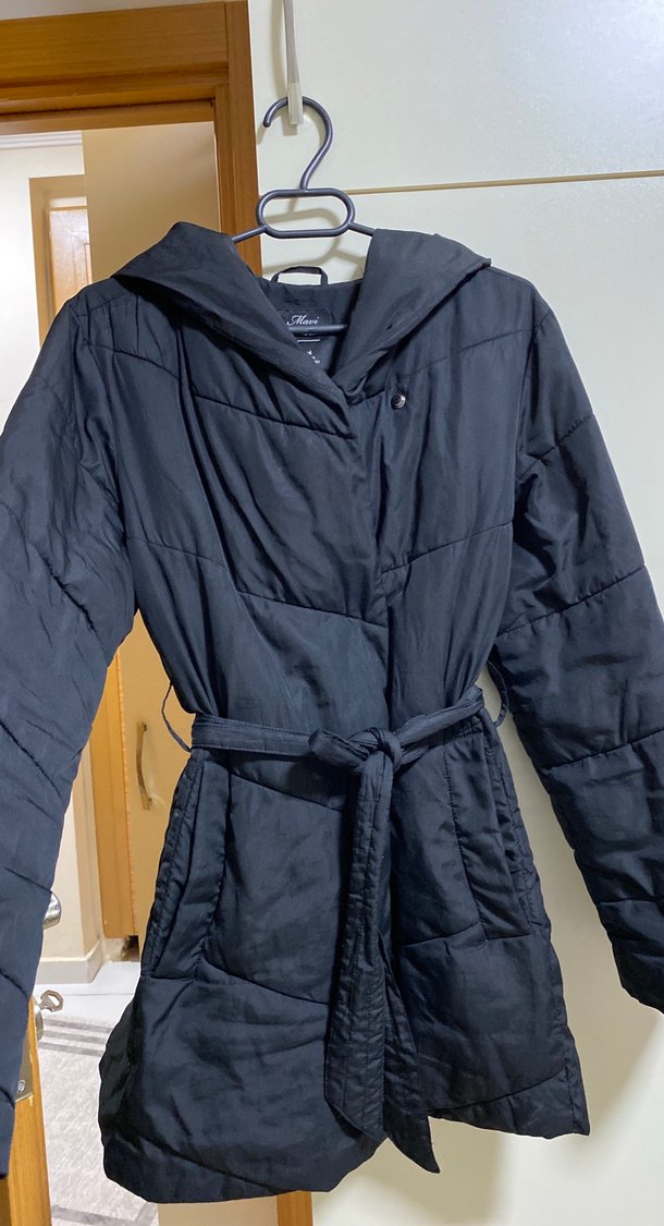 Kemerli Siyah Midi Kadın Kışlık Mont