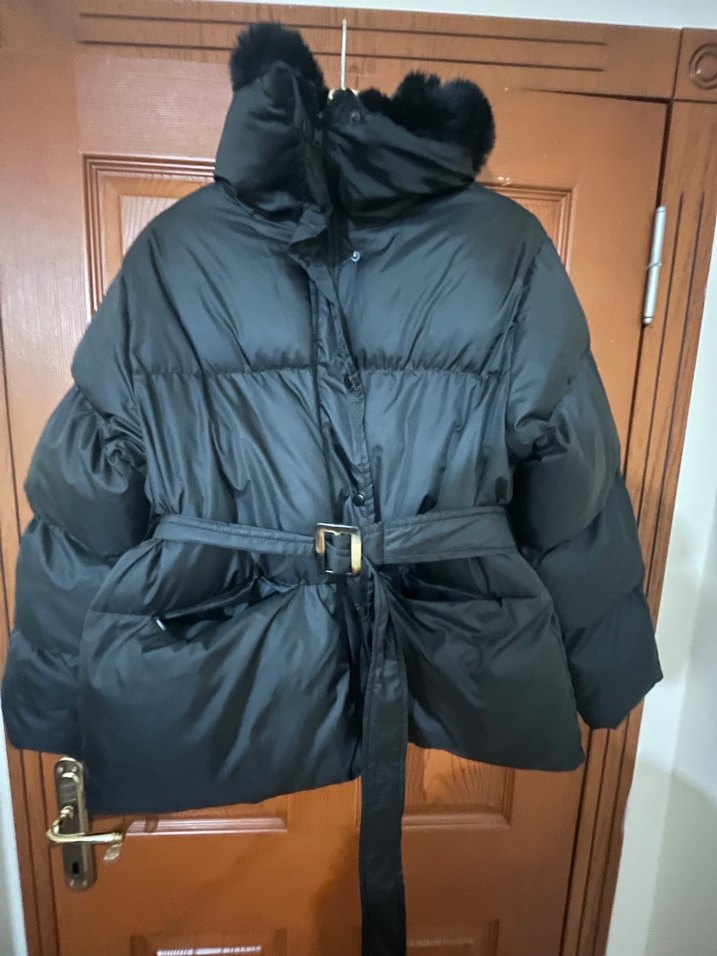 Kemerli Siyah Midi Kışlık Kadın Mont