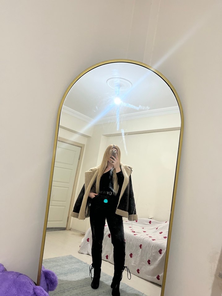 Kemerli, siyah süet midi kadın ceket, bol kesim, uzun kollu ve kesik yaka detaylıdır. Günlük kullanım için uygundur, sokak stilini yansıtır. Deformesizfir kuru temizleme istiyor
