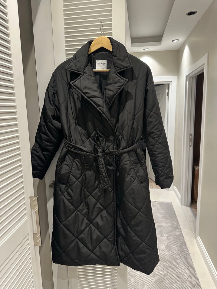 Kemerli Siyah Uzun Kadın Ceket