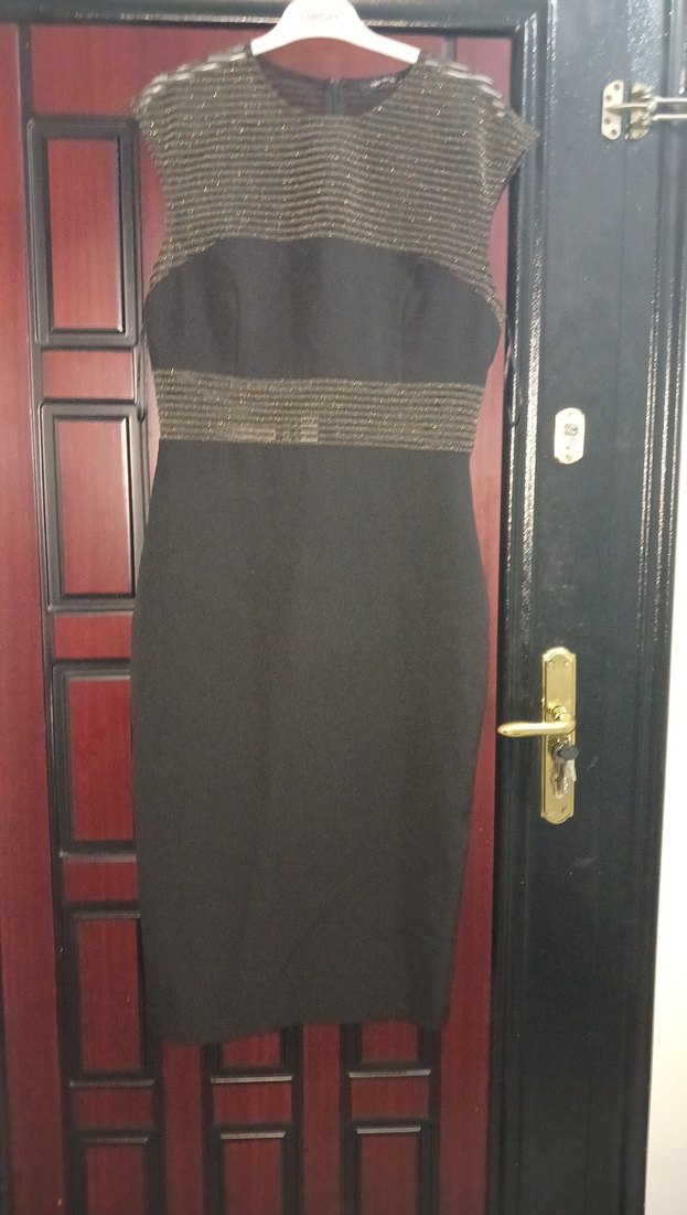 Kemerli bel detayına sahip, yakalı ve kolsuz siyah uzun elbise. Düz ve klasik kesimiyle ofis için uygundur.
