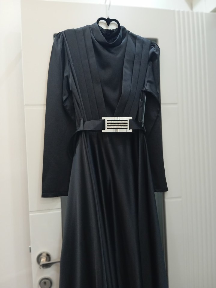 Kemerli Siyah Uzun Kadın Elbise