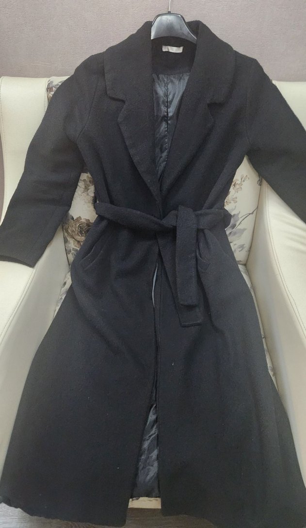Kemerli Siyah Uzun Kadın Kaban